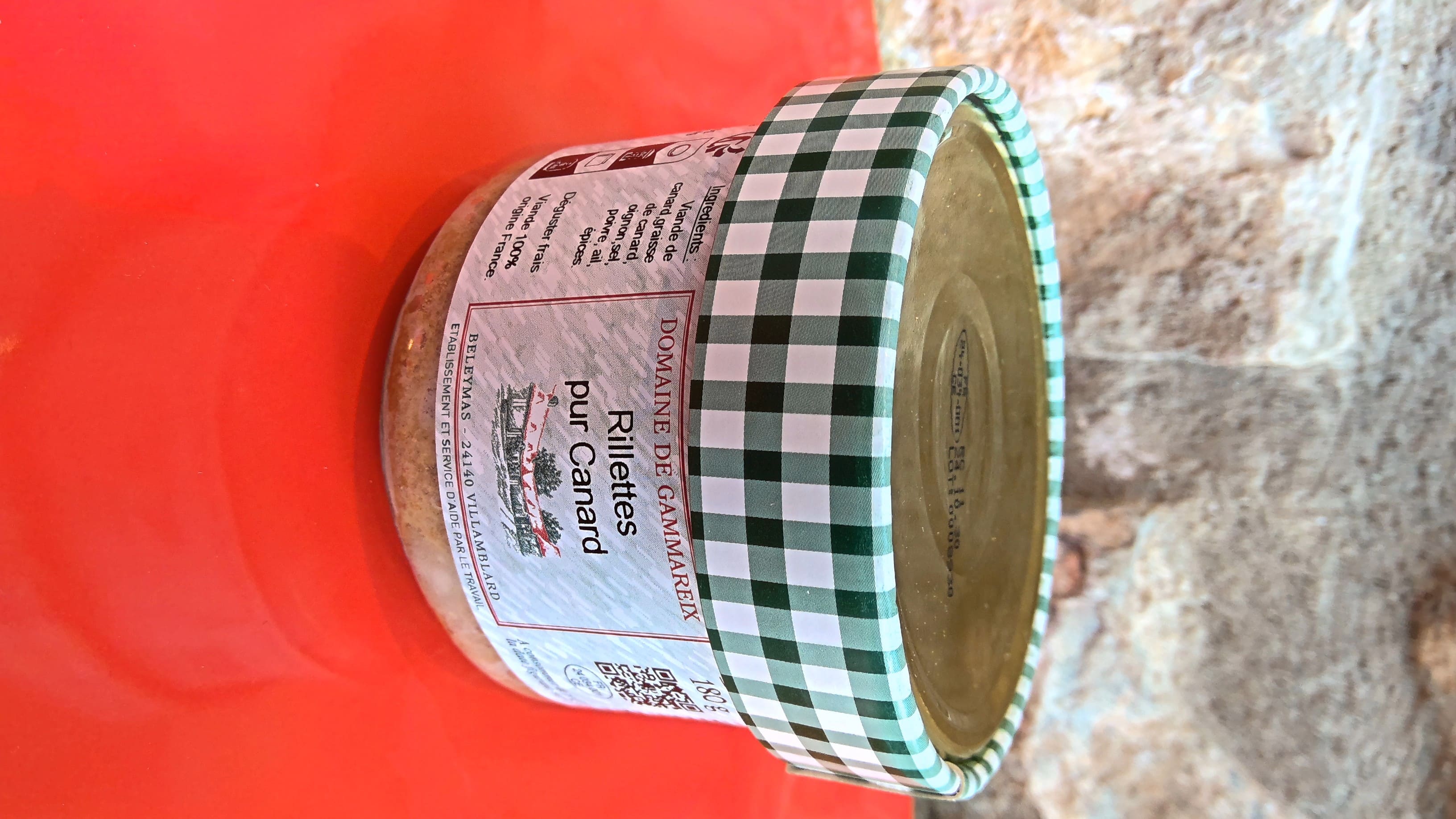 Ingrédients: Viande de canard, graisse de canard, oignon, sel, poivre, ail, épices.